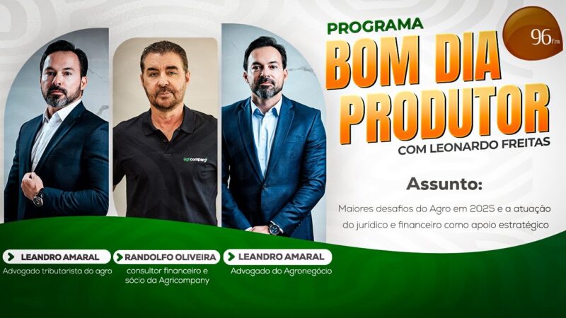 O programa “Bom Dia Produtor” discutiu os desafios críticos para o agronegócio em 2025 e 2026, focando na necessidade de apoio jurídico e financeiro estratégico.